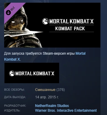Mortal Kombat X: Kombat Pack STEAM KEY РФ+СНГ ЛИЦЕНЗИЯ
