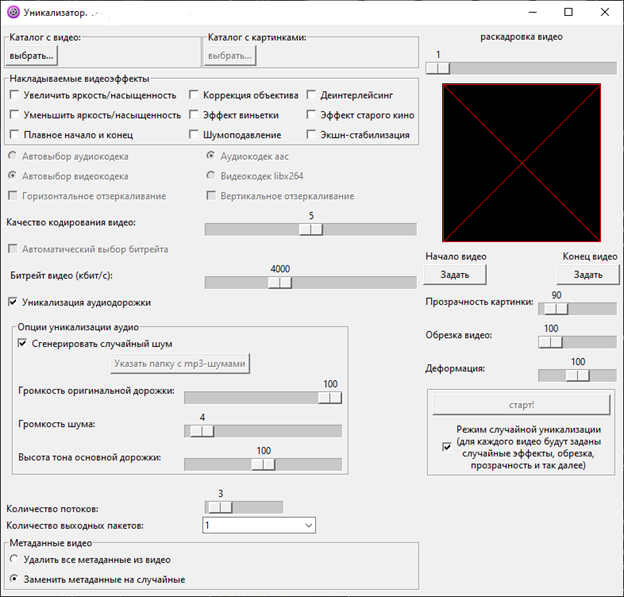 🚀 Добавлены опции уникализации аудиодорожки видео (можно менять высоту тона, накладывать сгенерированный шум либо mp3-файл поверх основной дорожки, а также менять поностью звуковую дорожку)