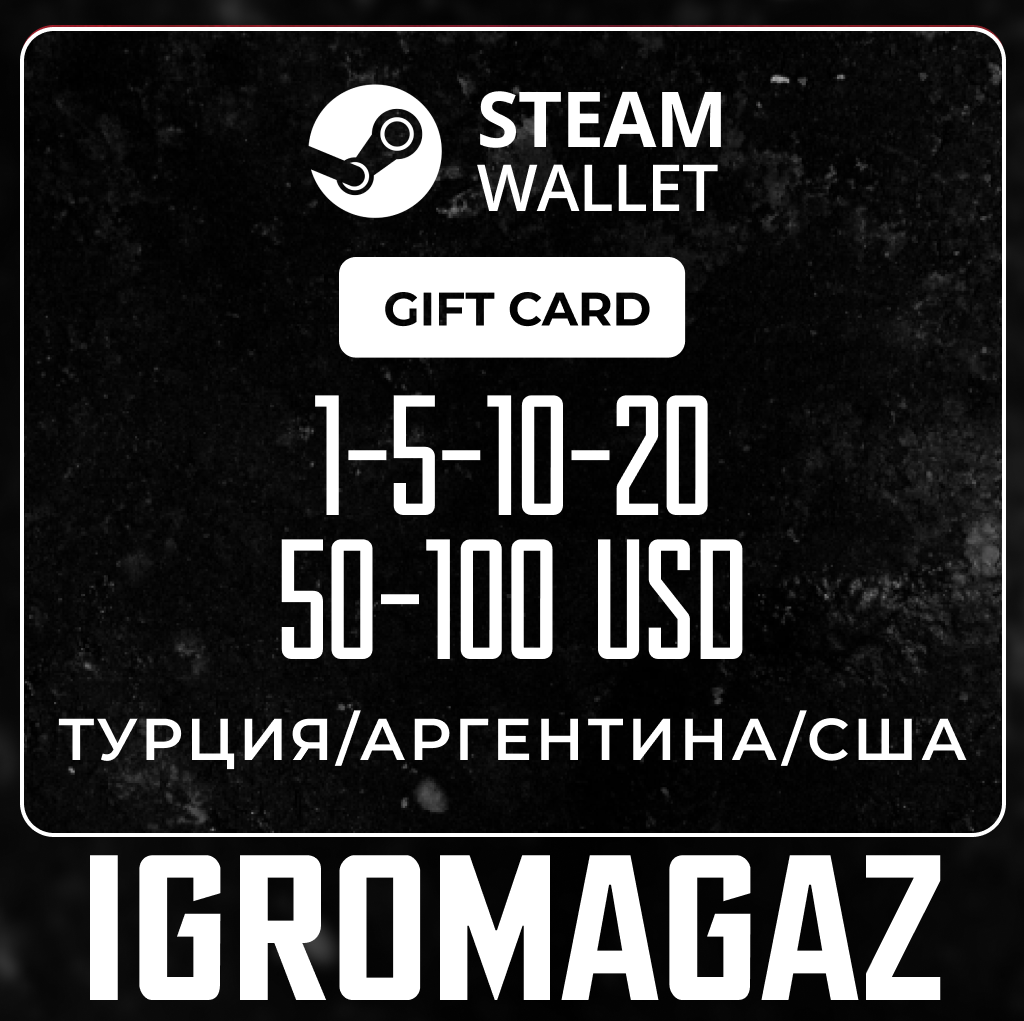 Карты Steam 5-10-20-50-100$ Турция/Аргентина/США🔵USD