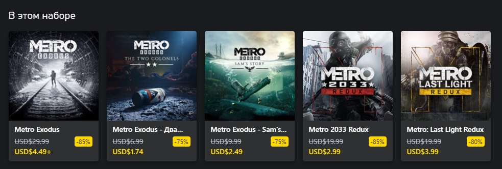 В комплект Metro Saga Bundle входят все три игры из получившей признание критиков серии Metro — Metro 2033 Redux, Metro: Last Light Redux и Metro Exodus Gold Edition (со всеми бонусными DLC).