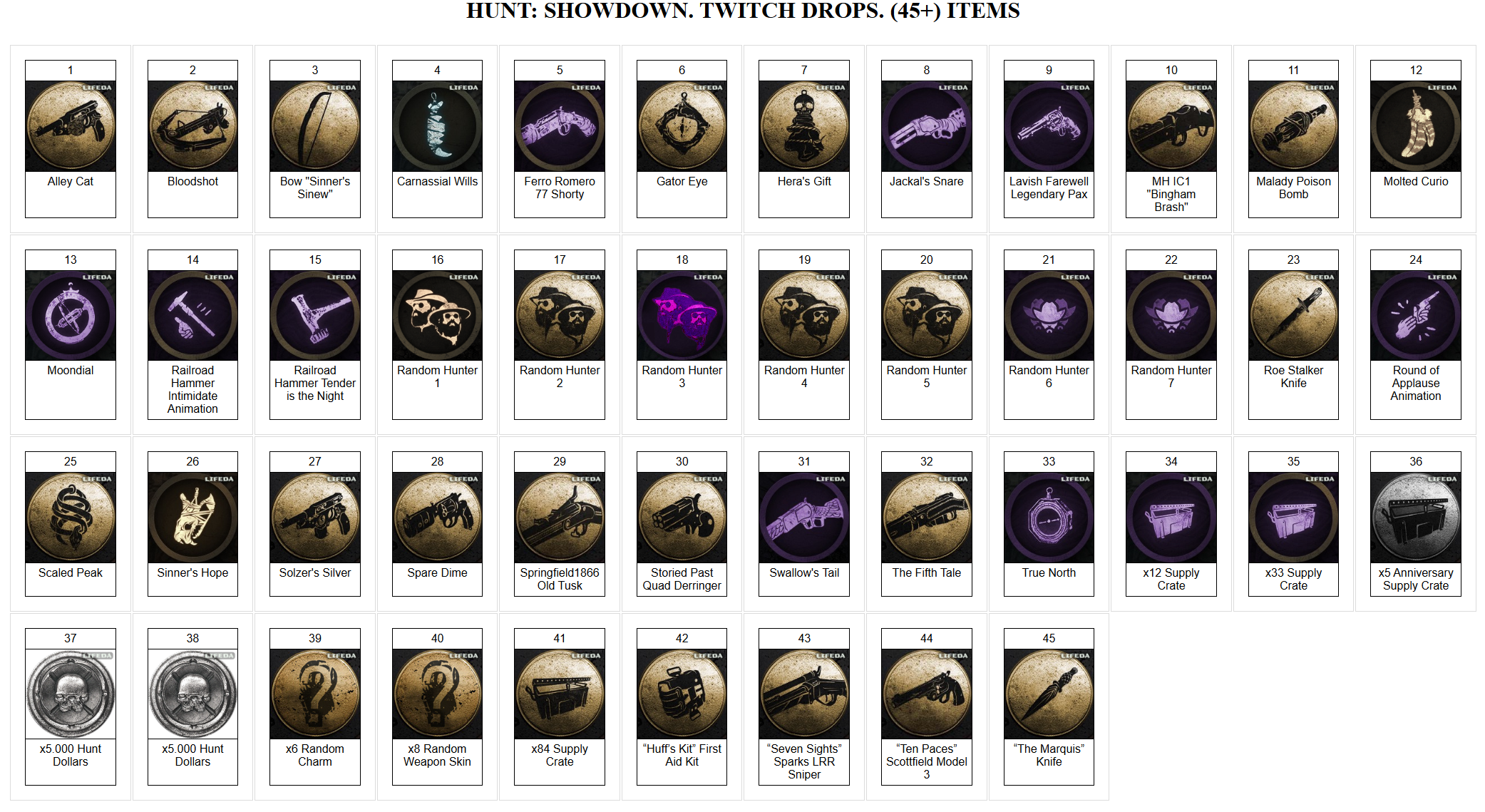 🛒 Список предметов к получению ( ru.kurfun.store/itemsInfo/huntshowdown/4215732 ):