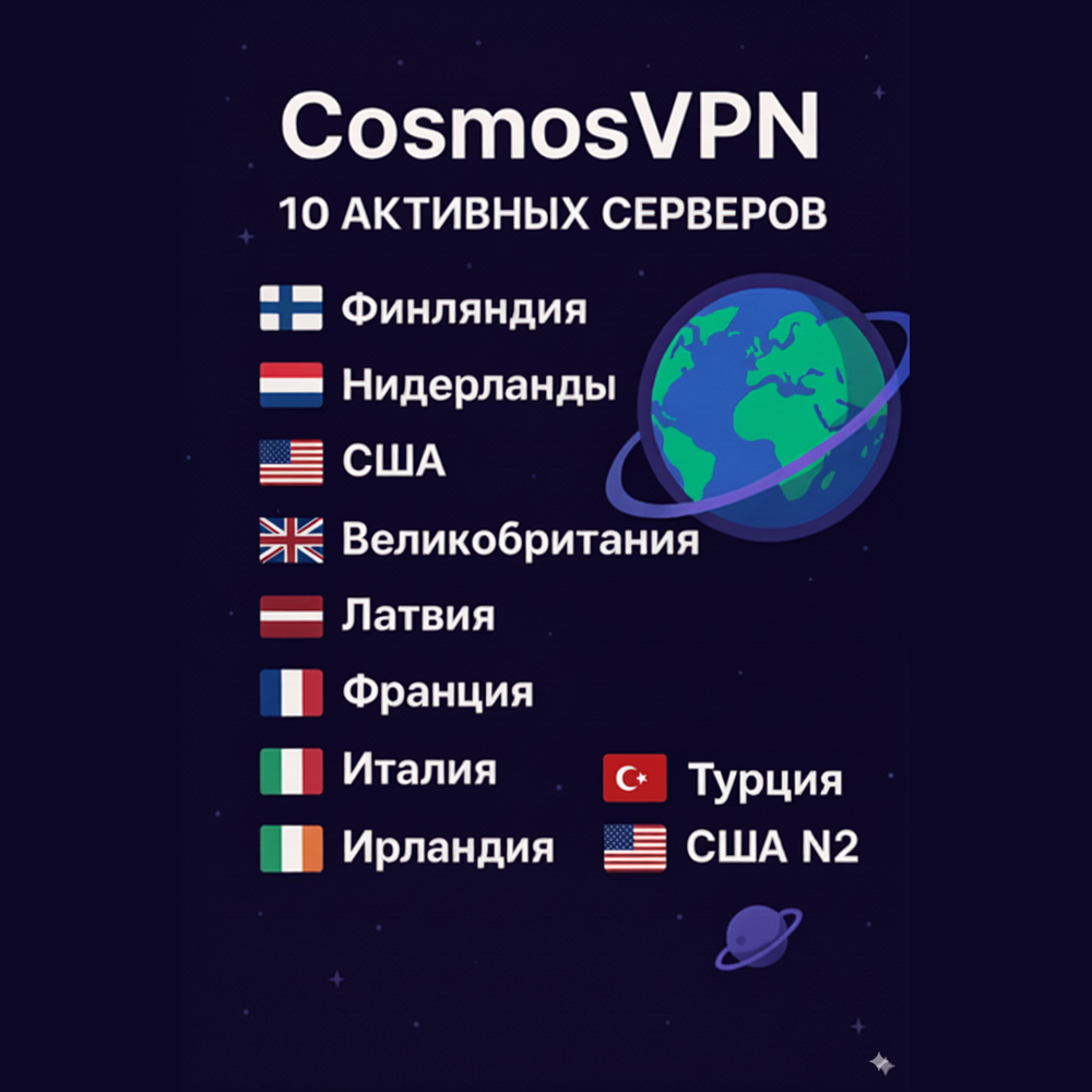 CosmosVPN 10 локаций VLESS [Hiddify] Безлимит