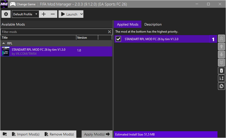 STANDART РПЛ MOD EA FC 26 by tim v1.0 TU 1.3.0