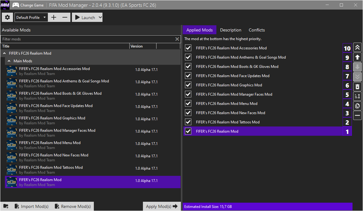 FC 26 - Realism Mod by FIFER 1.0 Alpha 17.1 TU 1.5.3