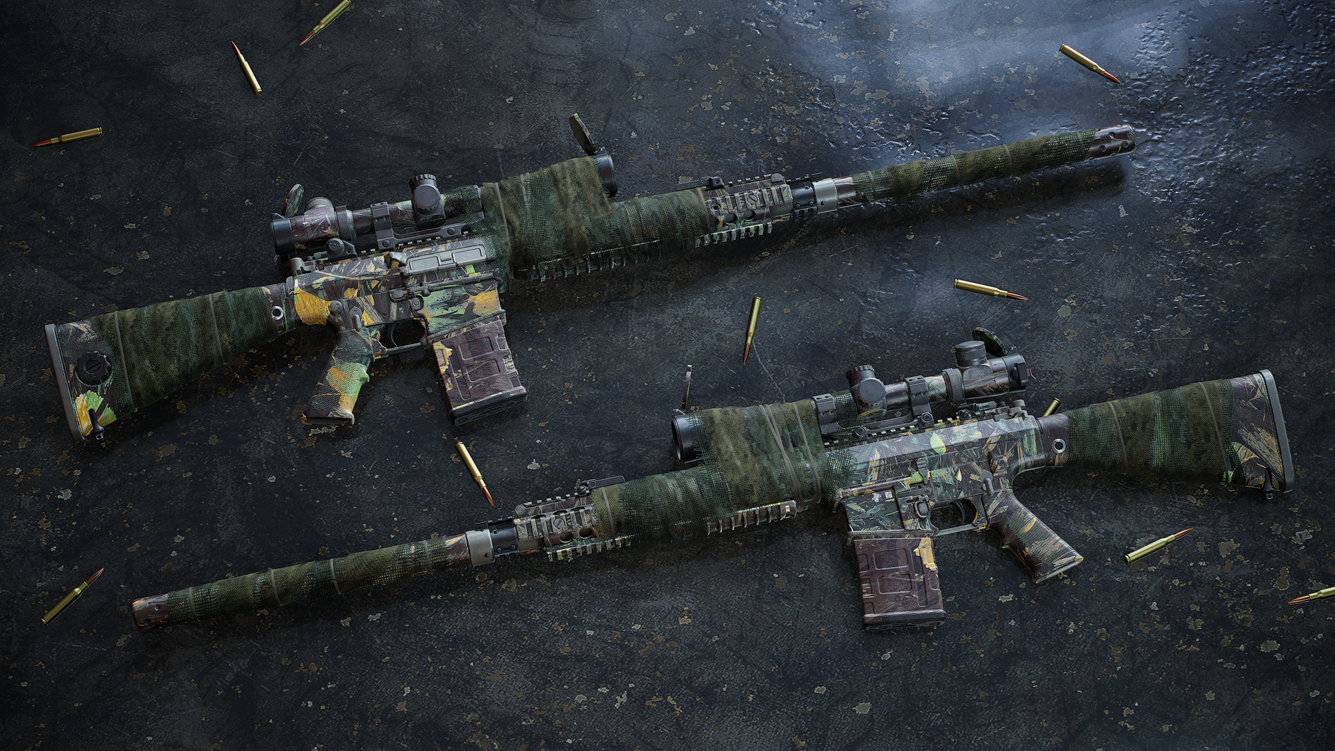 Подкрадитесь к своей жертве с вариантами раскраски оружия Hunter. Эти раскраски можно применить к шести видам оружия.