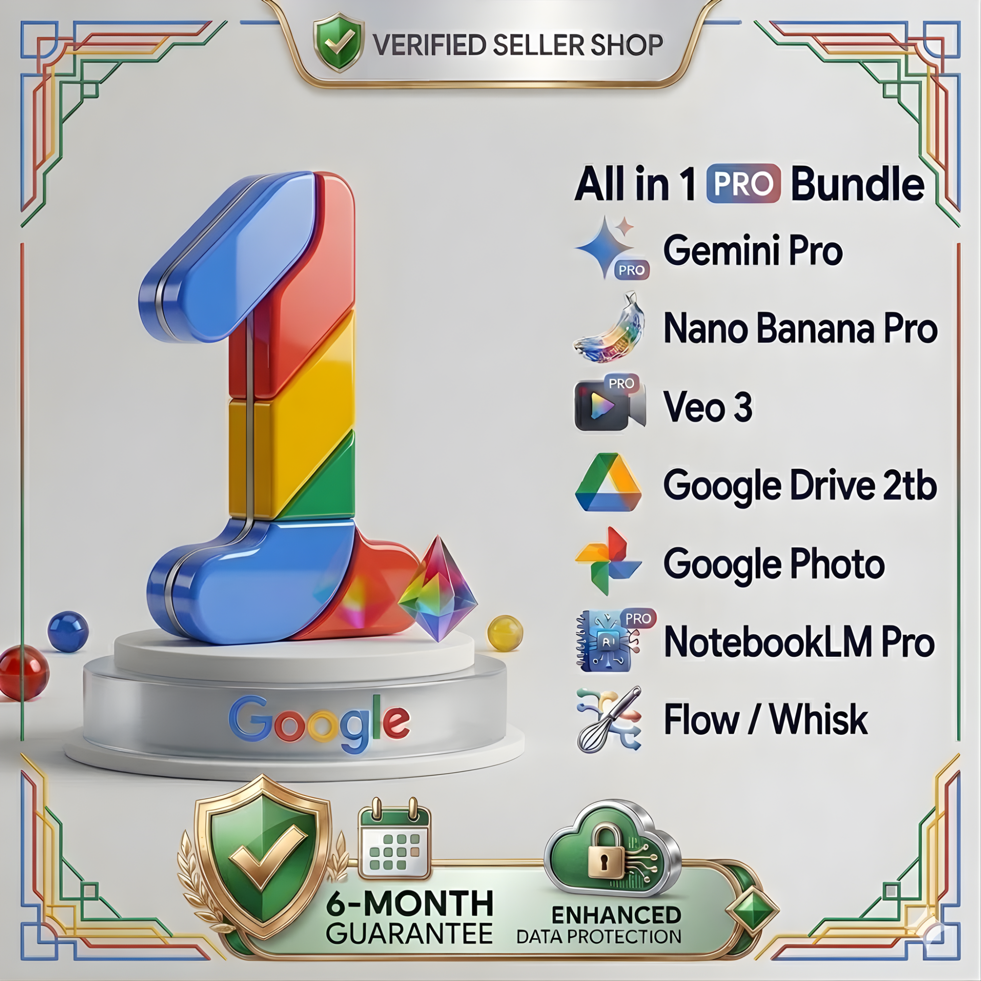 🔓 РАЗБЛОКИРУЙТЕ БУДУЩЕЕ: GOOGLE AI PRO BUNDLE (2026)Gemini 3.1 Pro | Veo 3.1 PRO | Drive 2TB | NotebookLM Pro | Nano Banana PRO | Flow/Whisk | Canvas | Deep Research | Create Music | Все обновления Google в течение периода вашей подписки.