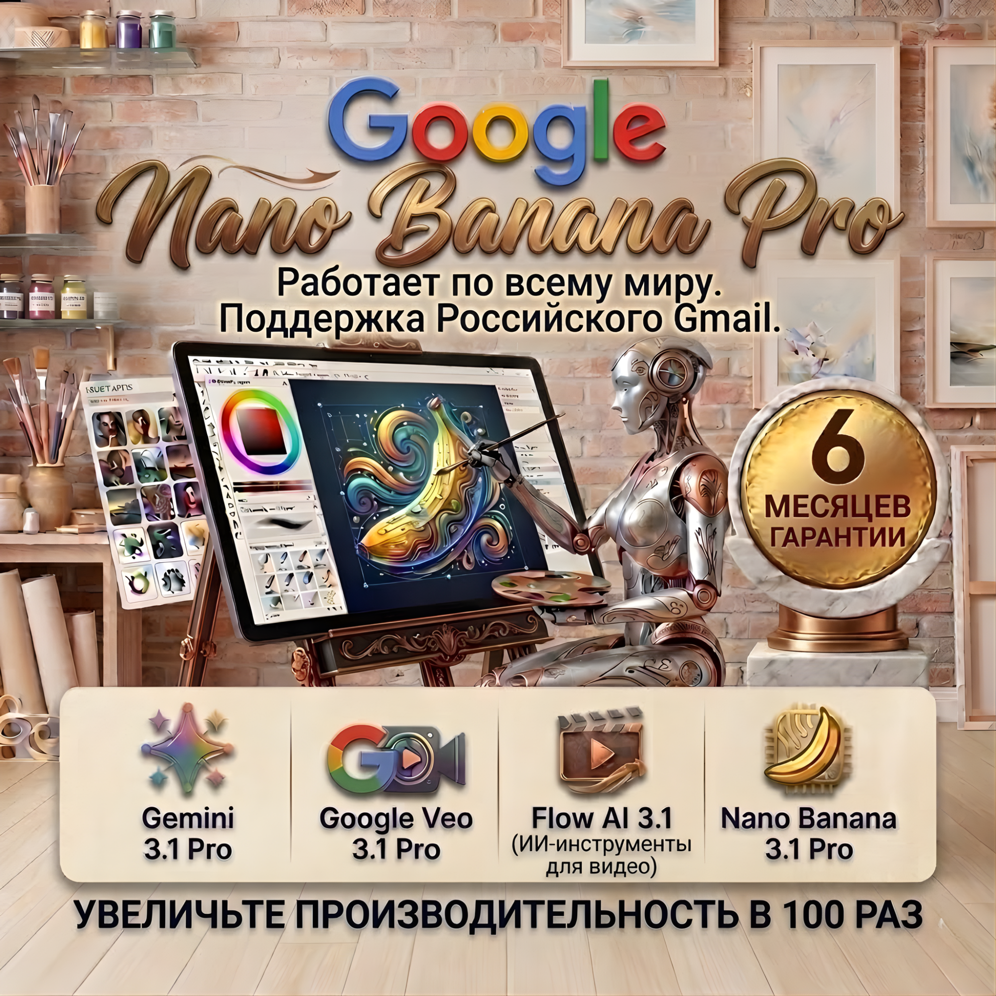 Google Nano Banana, Flow + Whisk 1k кредит/мес (Полная гарантия на 6 месяцев)