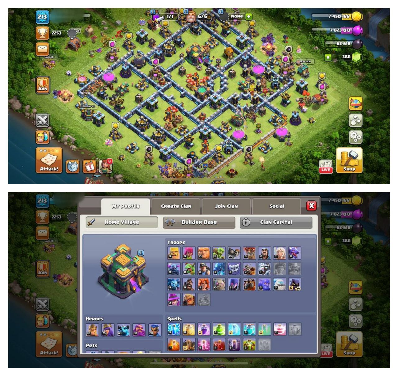 {CRAZY ACCOUNT} TH14 SEMI MAX ⚡️3 EPIC EQUIPMENT⚡️XP-213⚡️HERO 70-75-43-50-23⚡️BLUE WALLS⚡️MAGIC ITEMS⚡️OP LAB⚡️INSTANT DELIVERY 🚚