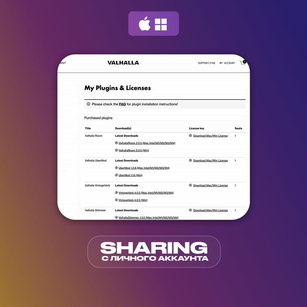 ✔ Пожизненная лицензия на плагины Valhalla