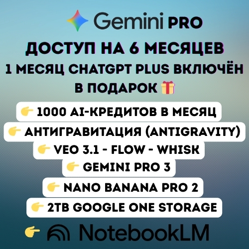 ✔ 6 месяцев доступа к Google AI Pro
