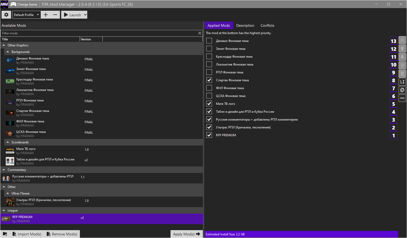 FC 26 - RFP PREMIUM FIFAMAN TU 1.4.2 РПЛ + 4 Дивизиона