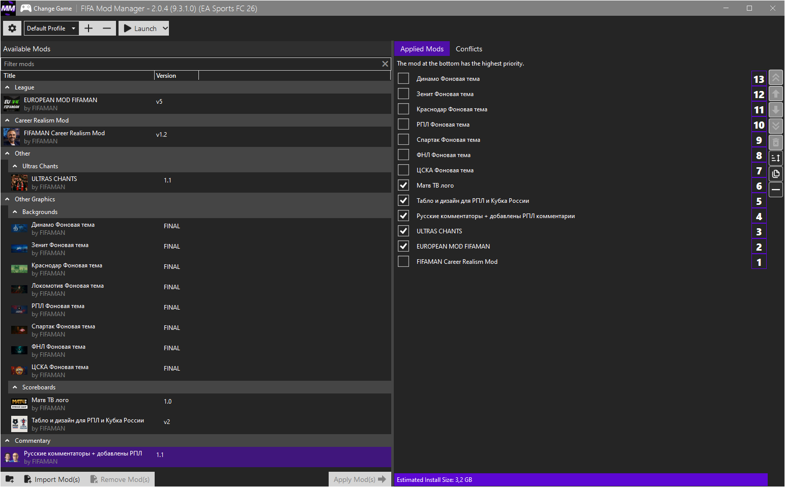 FC 26 - EUROPEAN PRO MOD FIFAMAN V5 TU 1.5.3 РПЛ + 4 Дивизиона