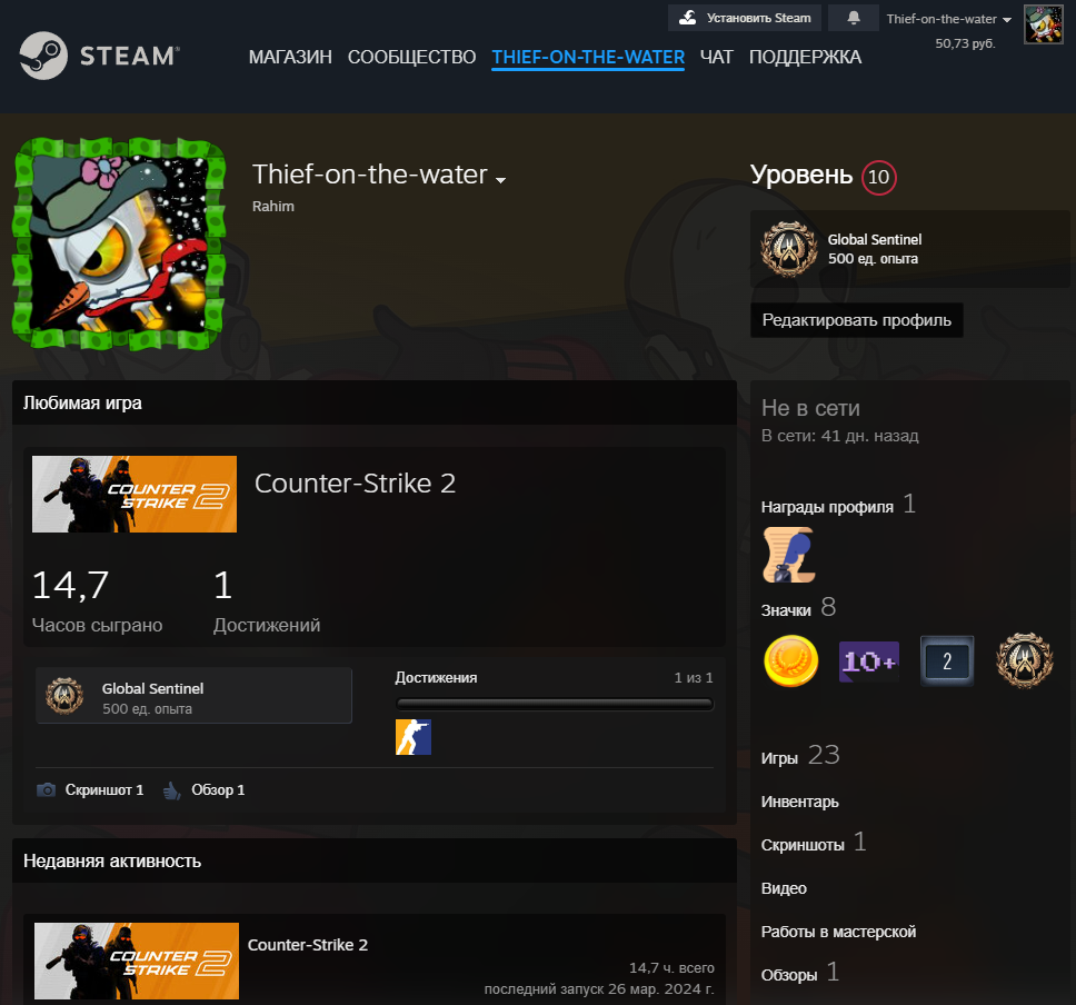Дата создания 04.2023 г.Уровень Steam 10