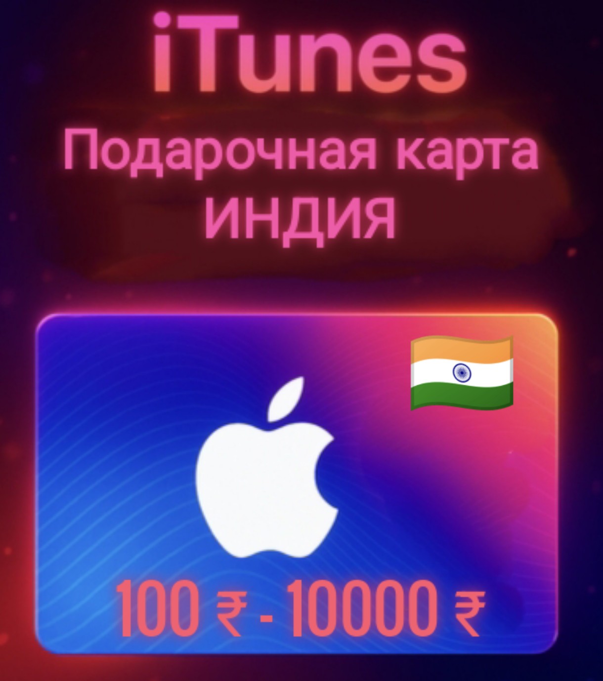 <Внимание>🍎 Подарочная карта Apple/iTunes от 100₹ до 10000 ₹ INR 🔑 (ИНДИЯ 🇮🇳)