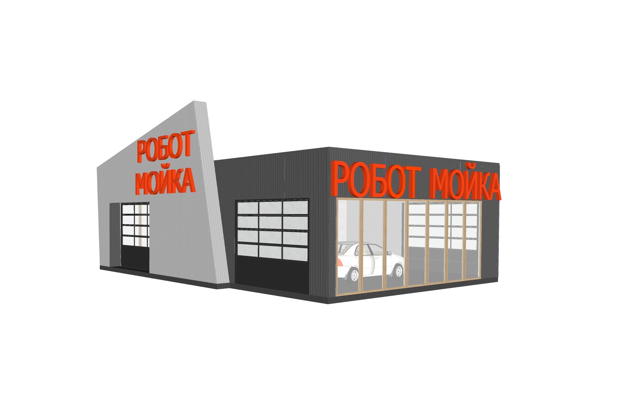 Альбомы рабочей исполнительной документации на здание автомойки робот из металлического каркаса и сэндвич панелей, разделы: АР( архитектурные решения, фасады), КМ(конструкции металлические метал каркас) КЖ (конструкции жби), ВК(водопровод канализация) с объемами спецификации на материал в формате pdf, cdw, skp.