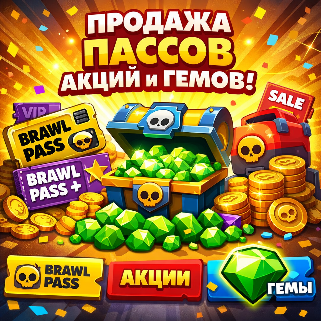 Добро пожаловать на самое выгодное место для приобретения ПАССОВ/АКЦИЙ/ГЕМОВ для приятной игры в BRAWL STARS 🔆Любая ПАСС 🎫/АКЦИЯ 🧩/ГЕМЫ❇️/ на ваш выбор