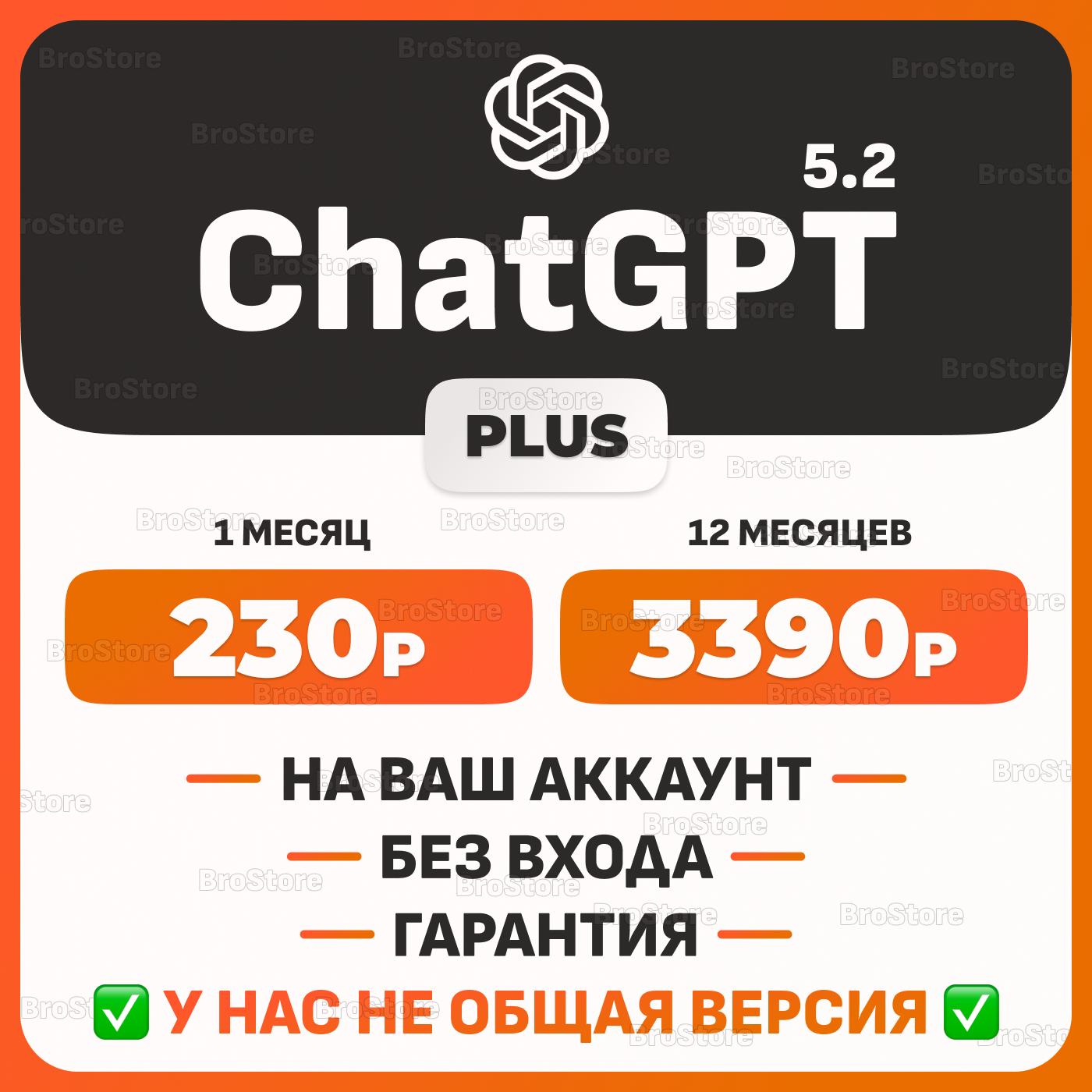 [НА ВАШ АККАУНТ] ChatGPT Plus — подписка / продление на 1-12 месяцев НА ВАШ ЛИЧНЫЙ АККАУНТ - НЕ общий , НЕ семейный доступ , цена актуальная ( ПРОЧИТАЙТЕ ПЕРЕД ТЕМ КАК ПИСАТЬ ВОПРОСЫ !!! )