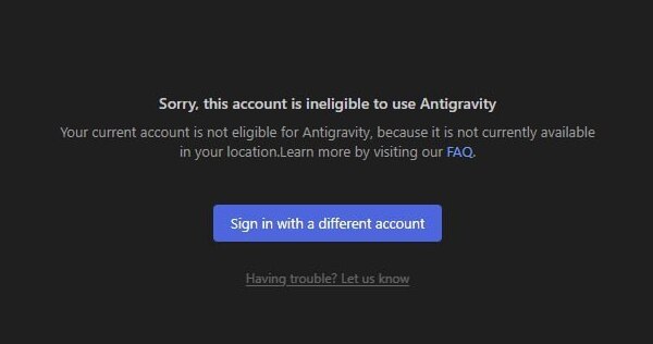 ❌ "Sorry, this account is ineligible to use Antigravity"
