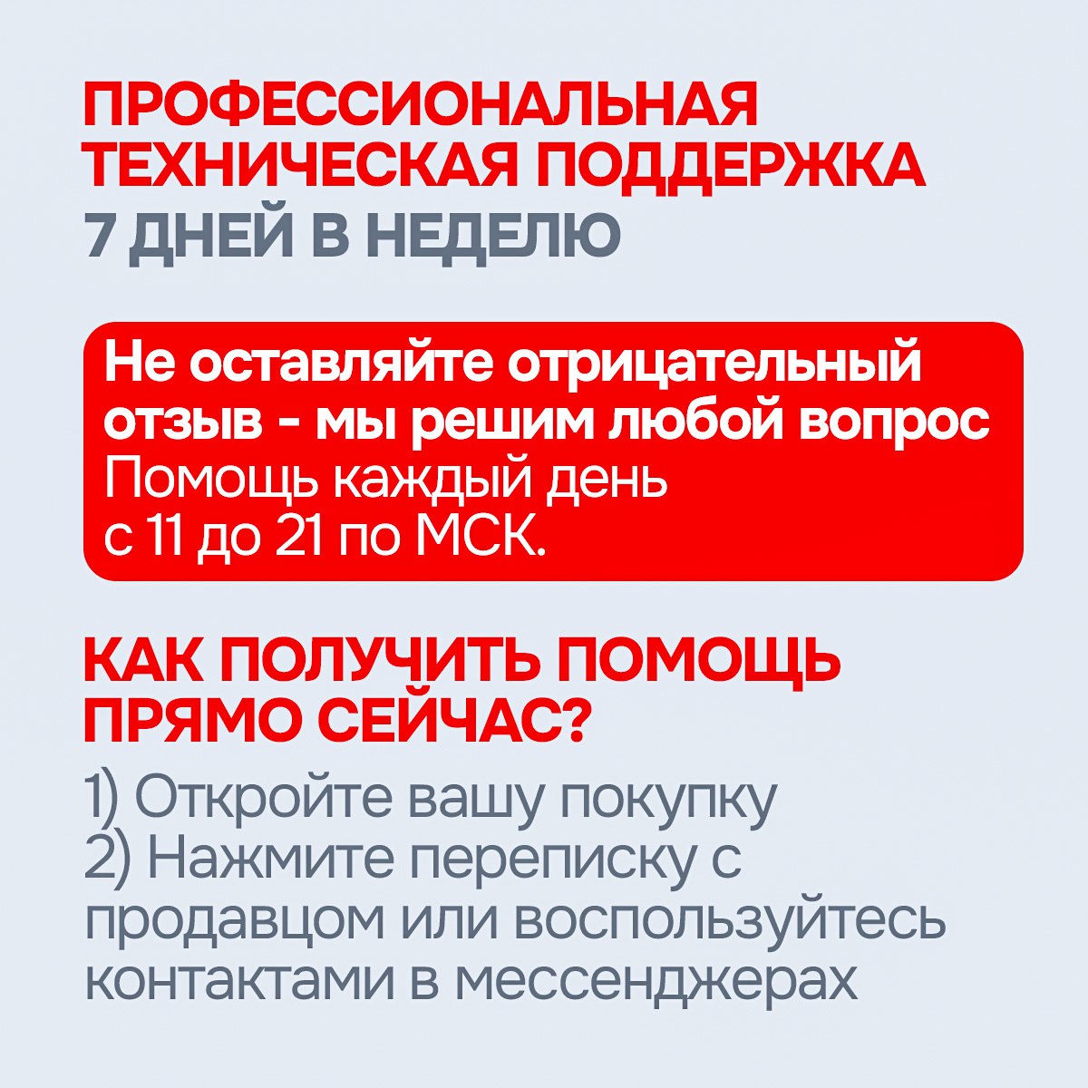 • Поддержка от магазина 7 дней в неделю с 11 до 21 по московскому времени