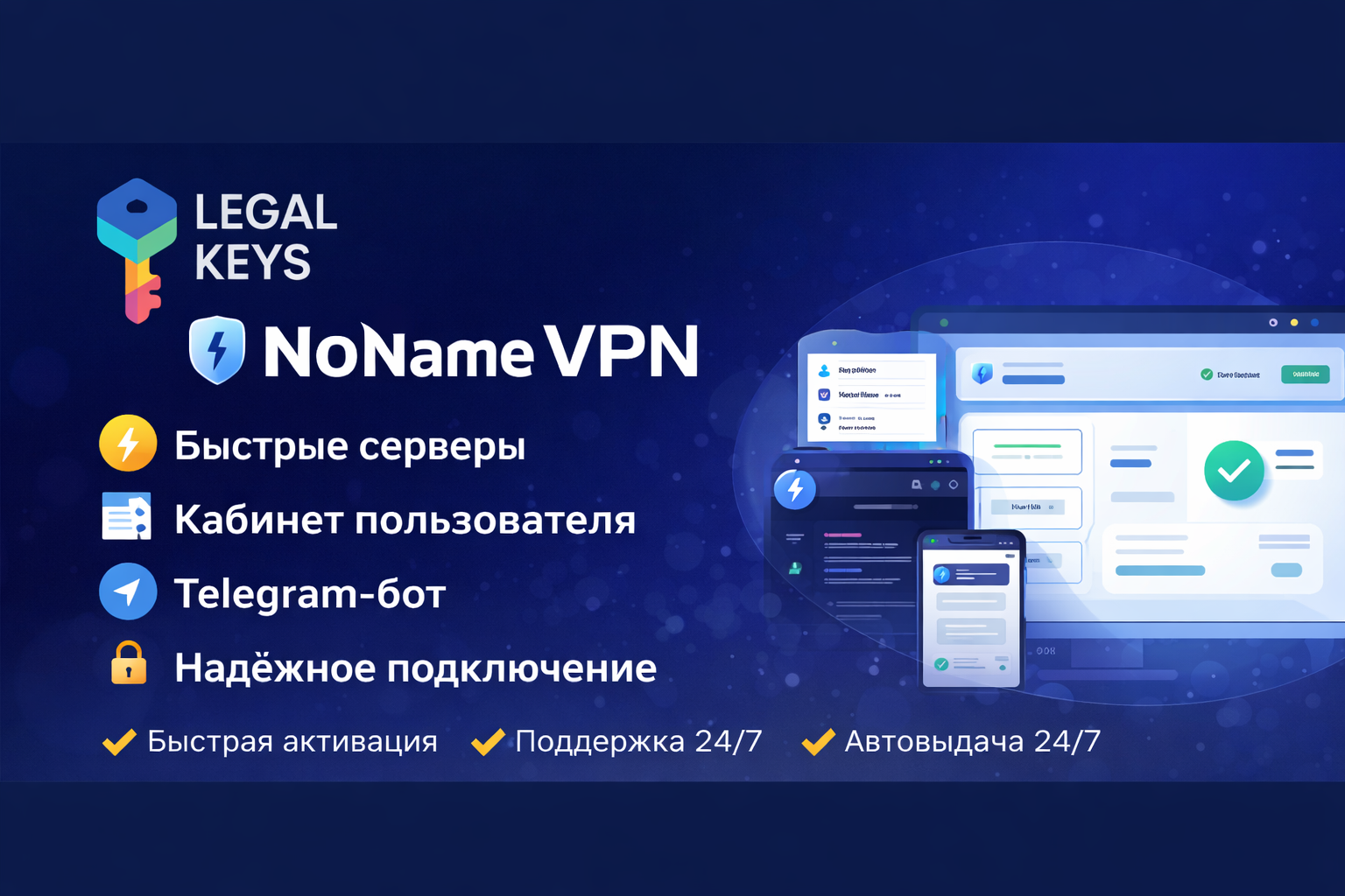 🔥No Name VPN Пробный доступ 24 часа | Быстрая активация | Автовыдача