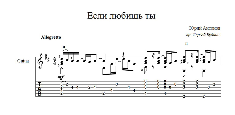 Аранжировка для гитары песни Юрия Антонова "Если любишь ты".
