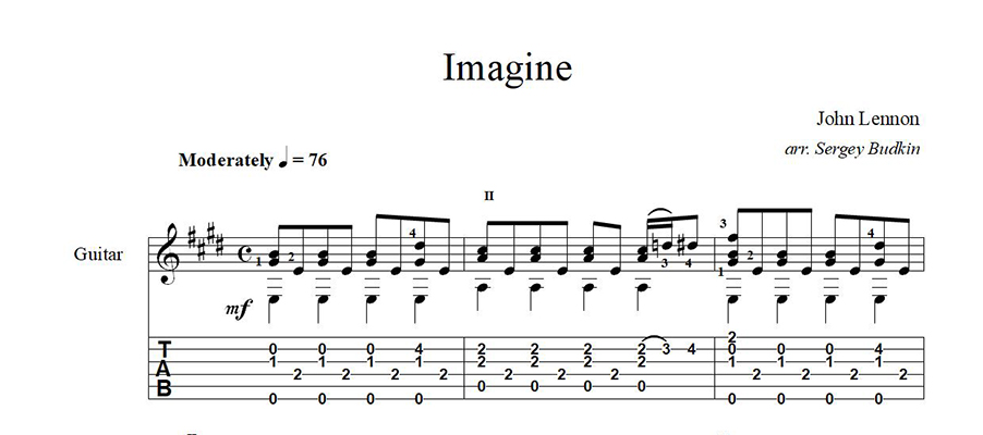 Аранжировка для гитары песни Джона Леннона "Imagine".