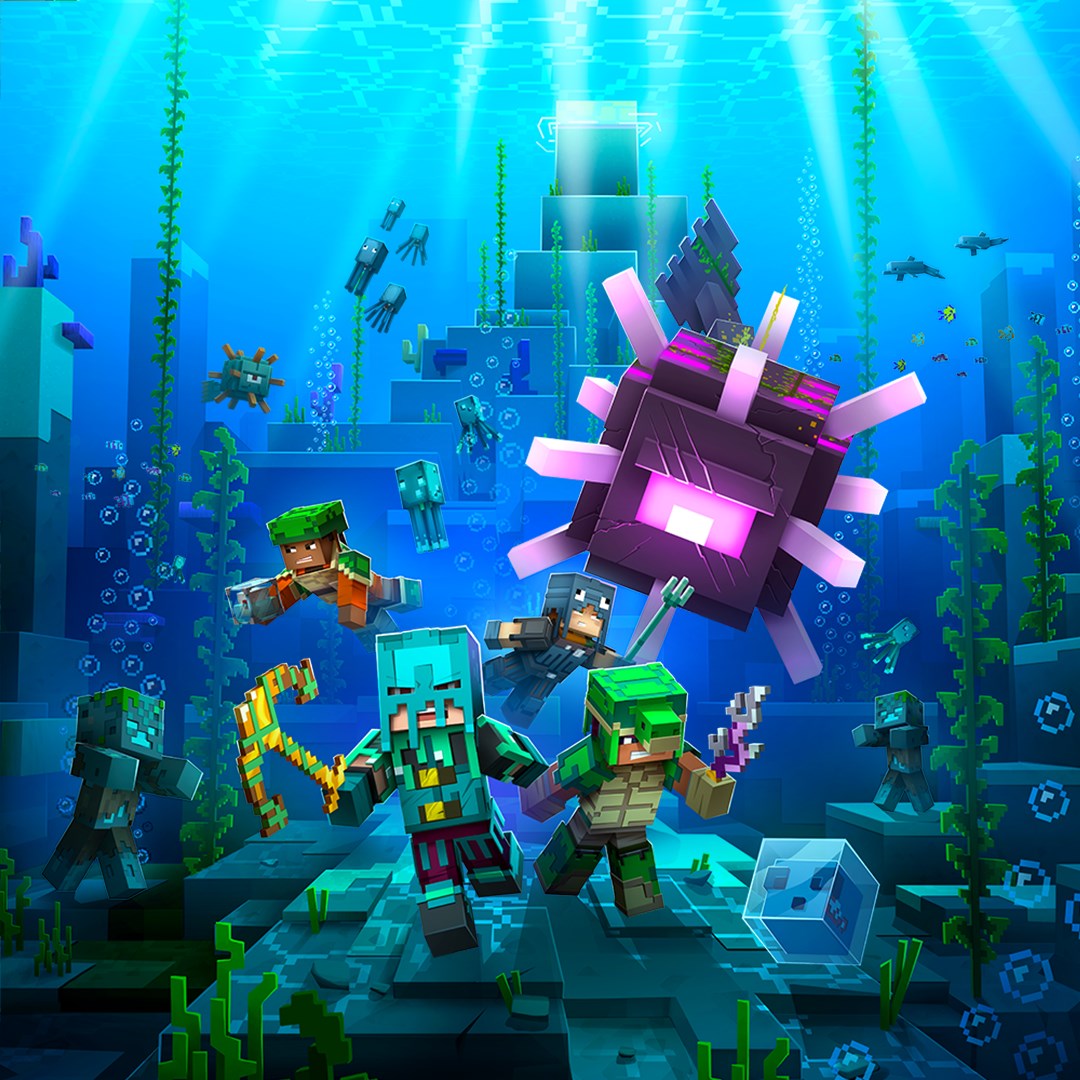 Подключайтесь к своему следующему приключению с новым дополнением Minecraft Dungeons: Hidden Depths! Кусок из Орба Dominance, перенесенный на темную подводную струю, теперь пробуждает созданий, которые долгое время спали под водой. На вас лежит обязанность освободить приливы от потока коррупции. Легионы затонувших и утопленных врагов скрываются среди потерянных сокровищ, поэтому вам необходимо остерегаться под давлением. Природная красота океана может отвлечь от опасностей глубины, но новые оружия, снаряжение и артефакты сделают все пойдет гладко.
