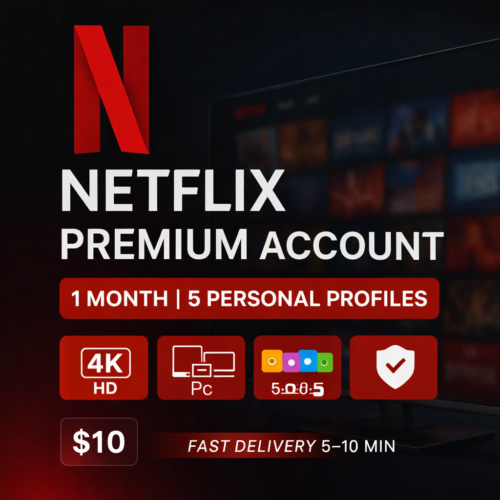 4️⃣ В течение 5–10 минут вы получите личный аккаунт Netflix Premium с 5 профилями