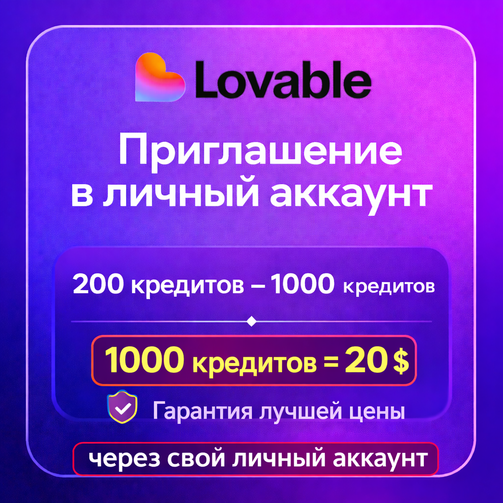 Lovable AI Credits – Приглашение в личный аккаунт (200-1000 кредитов)