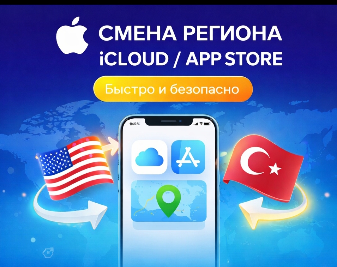 🌍 Поможем сменить страну Apple ID (iCloud / App Store) на нужный регион.Подходит для оформления подписок, покупок по выгодным ценам и доступа к контенту другой страны.
