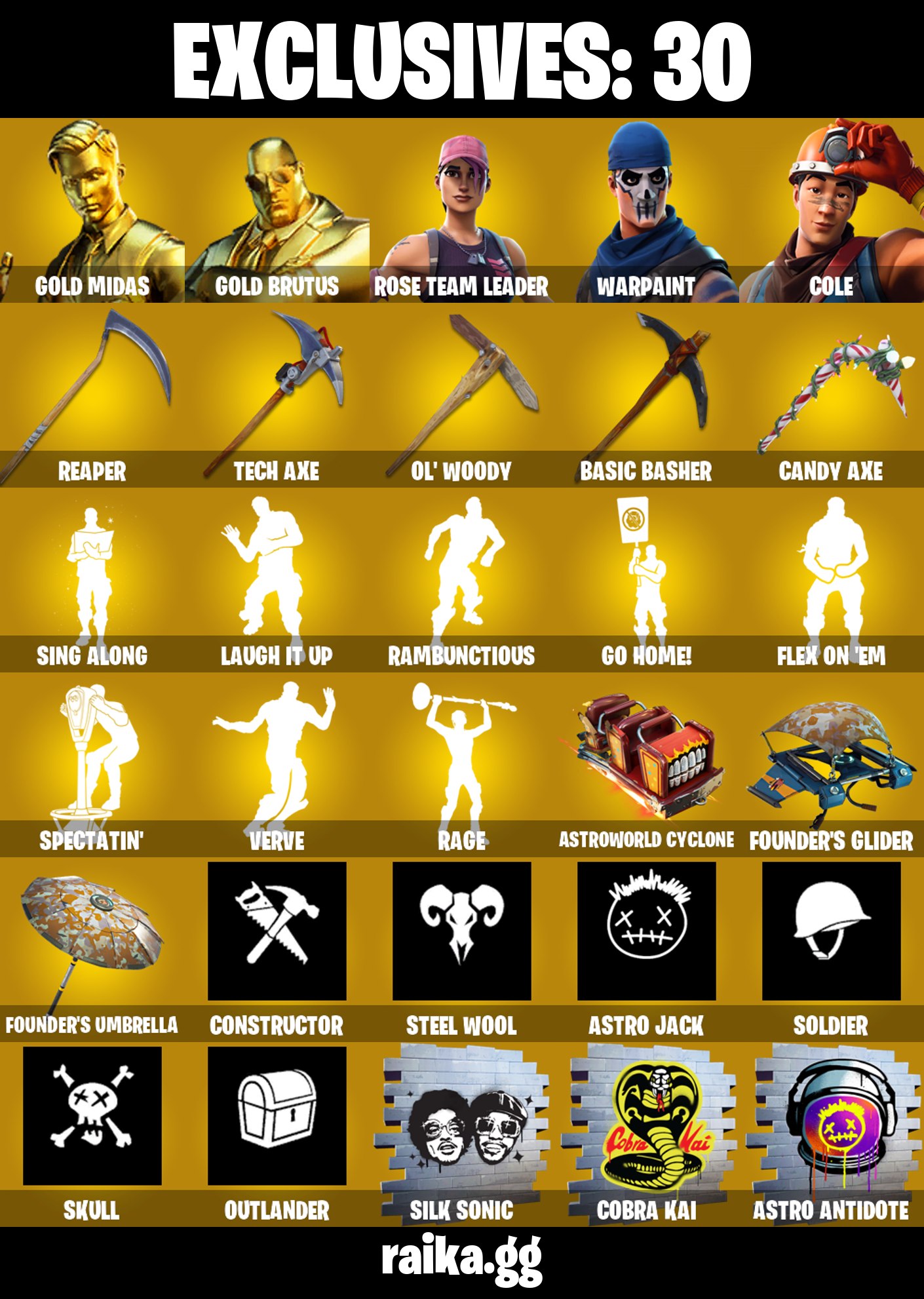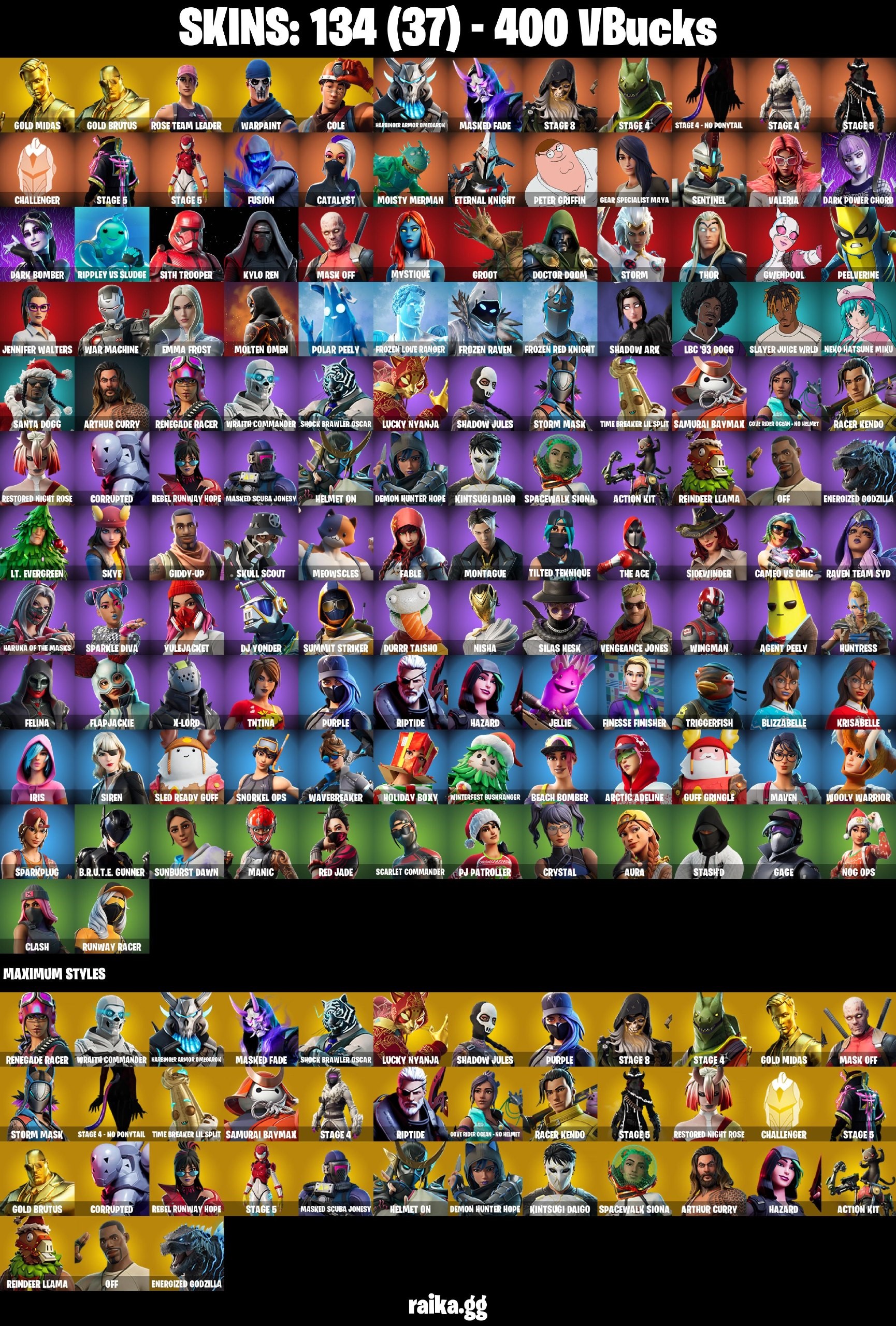 [PC/PSN/XBOX] 134 skins | OG STW | Gold Midas | Gold Brutus | Cole | Harbinger Armor