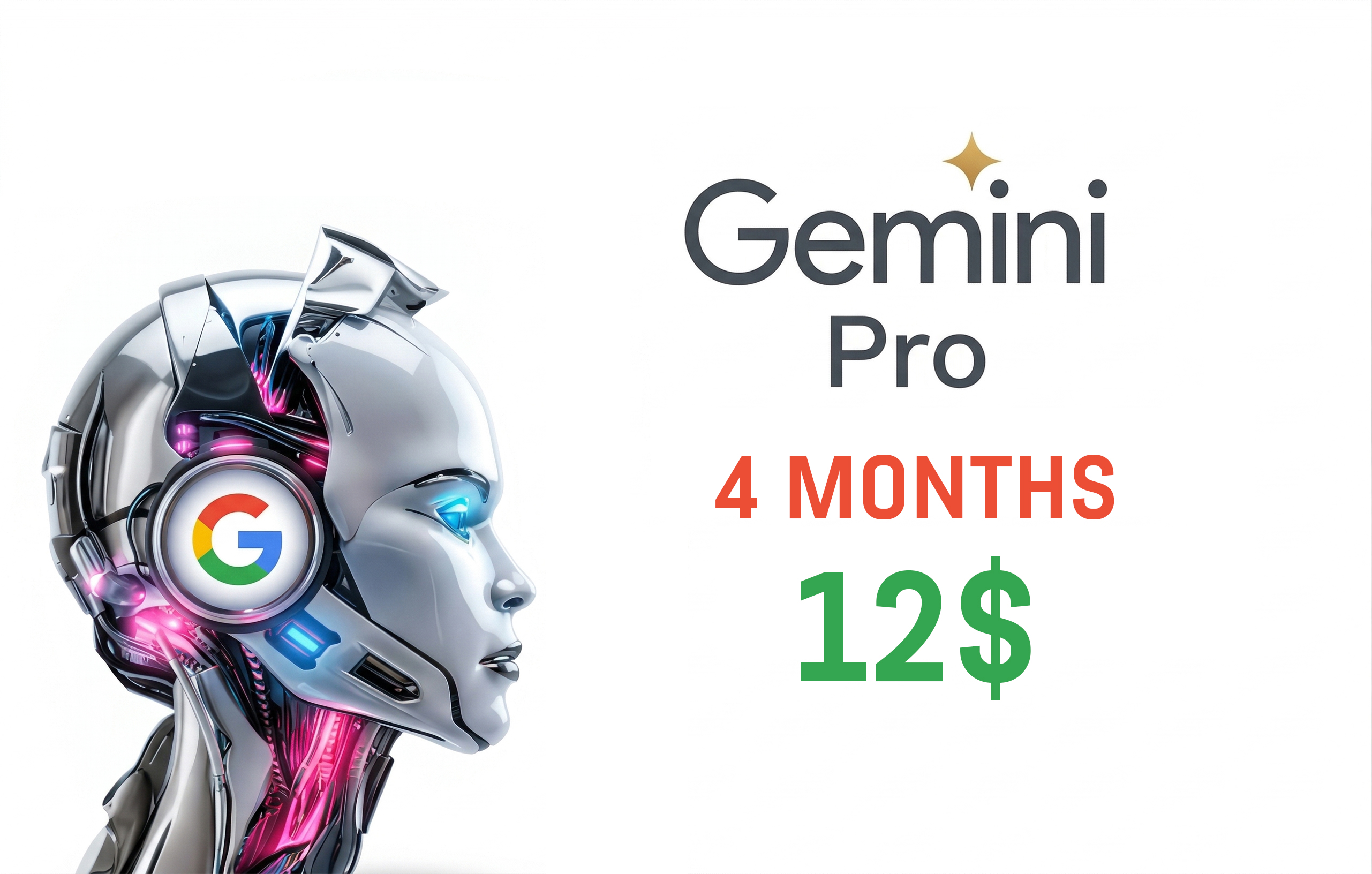 Получите доступ к Google Gemini Pro на 4 месяца по 0$ .Этот продукт предоставляет рабочий способ активации/ссылку, с помощью которой вы сможете активировать Gemini Pro на новом аккаунте (без предыдущей подписки).