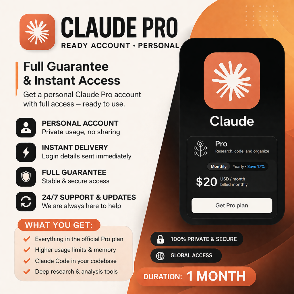 🚀 Claude Pro Ready Account – готовый премиум аккаунт для мгновенного использования без настройки и ожидания. Идеально подходит для разработчиков, студентов и специалистов, которым нужен стабильный AI инструмент для работы, обучения и автоматизации задач.Это личный аккаунт, который не используется другими пользователями. Вы получаете полный контроль, стабильную работу и доступ ко всем основным возможностям Claude Pro, включая продвинутую логику, длинные диалоги и качественные ответы для сложных задач.