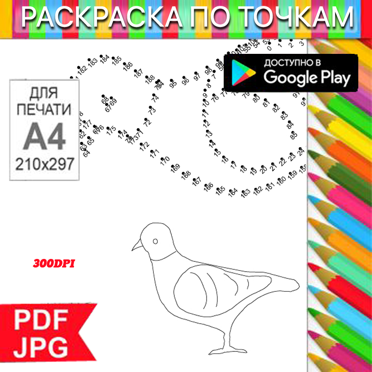 Голубь Раскраска По точкам Антистресс для распечатки на принтере и Android