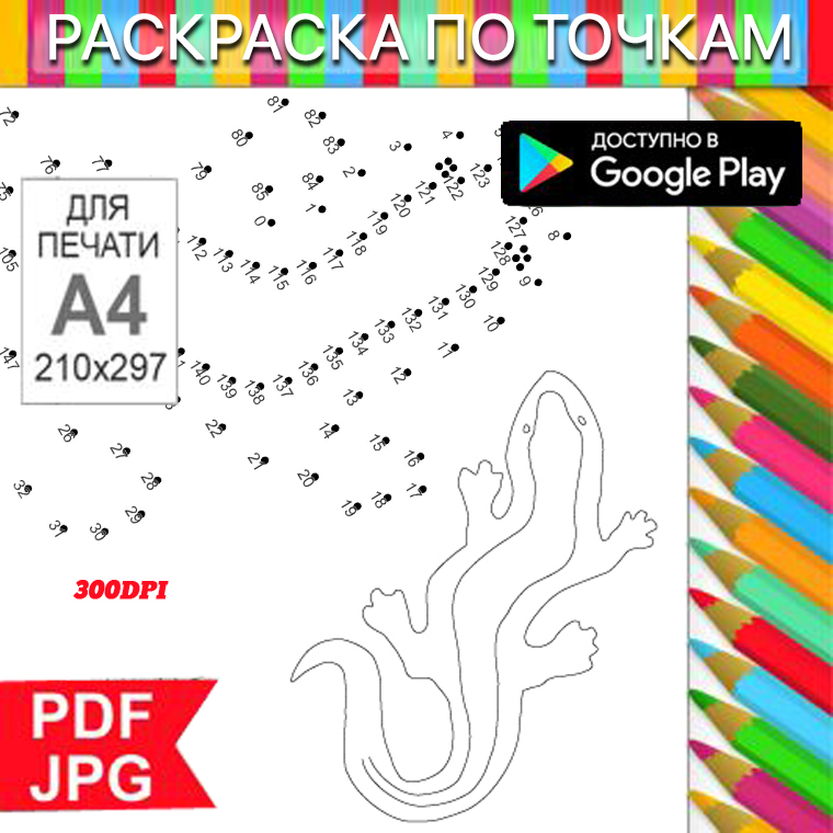 Ящирица Раскраска По точкам Антистресс для распечатки на принтере и Android