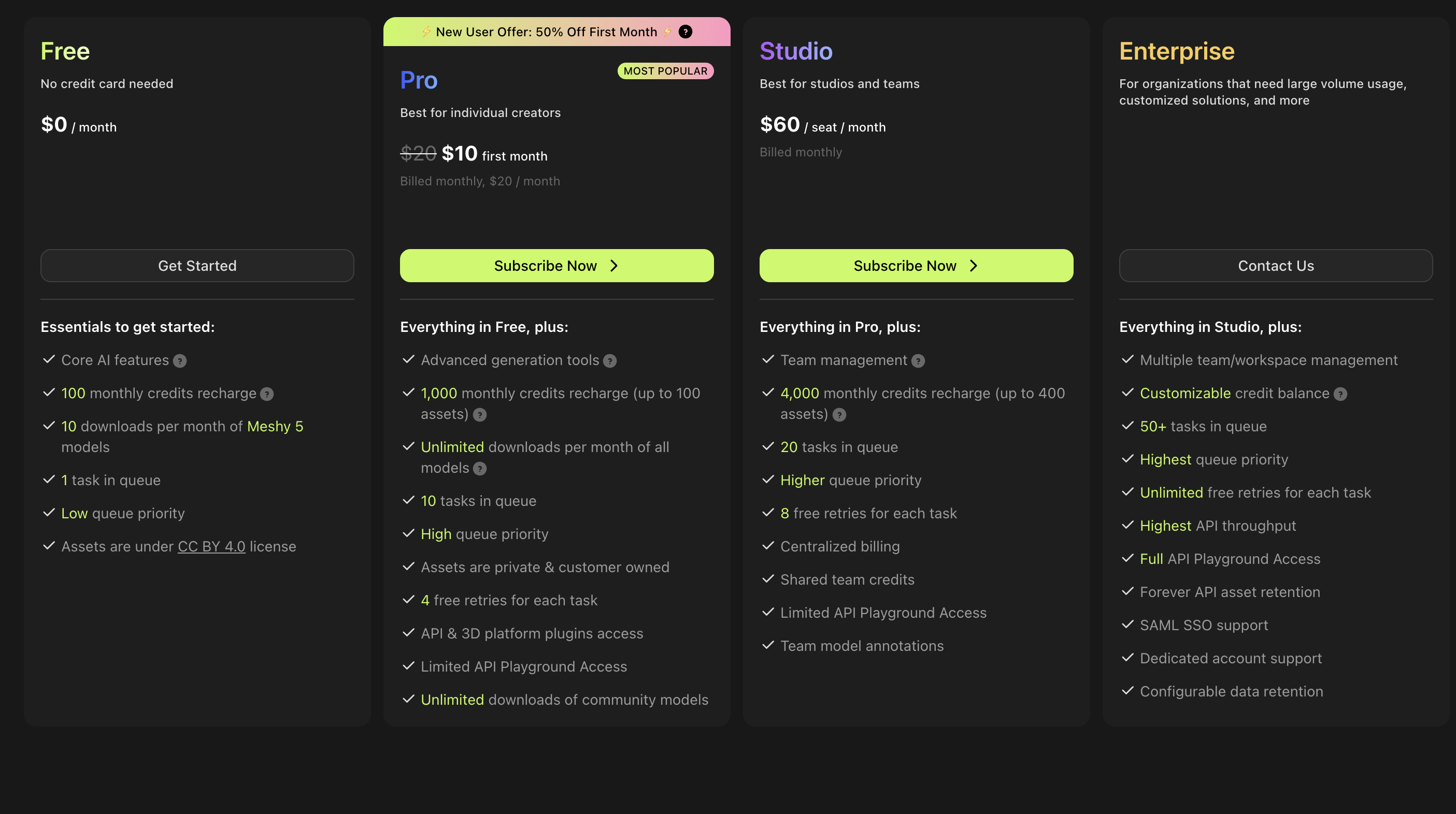 • 1100 кредитов включено для реализации ваших проектов по 3D-генерации.