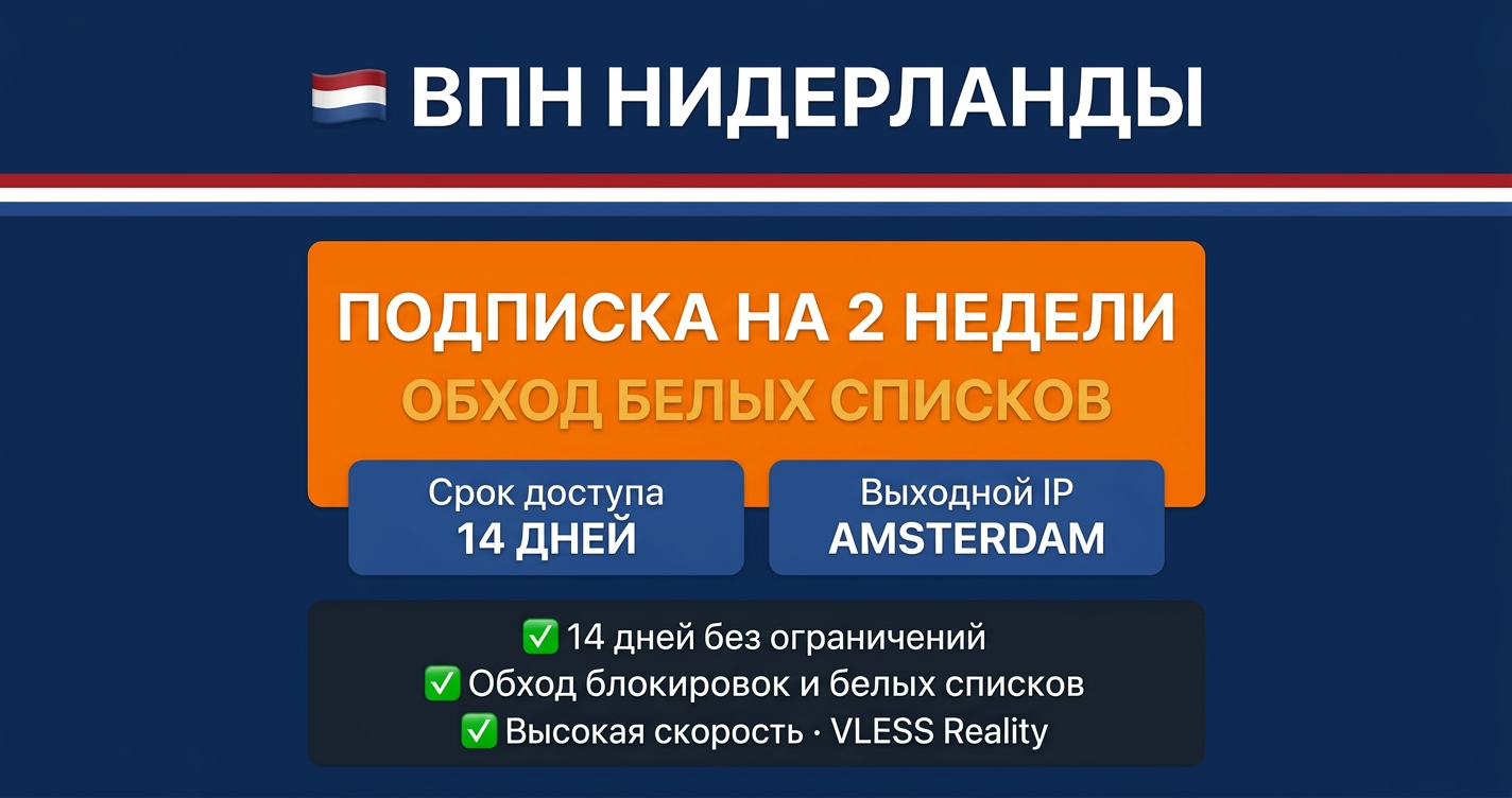 🇳🇱 ЛИЧНЫЙ VPN VLESS 🇳🇱 НИДЕРЛАНДЫ ВПН + обход белых списков 14 деней