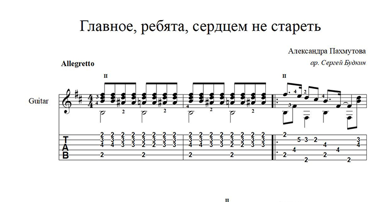 Главное, ребята, сердцем не стареть (А.Пахмутова) ноты для гитары