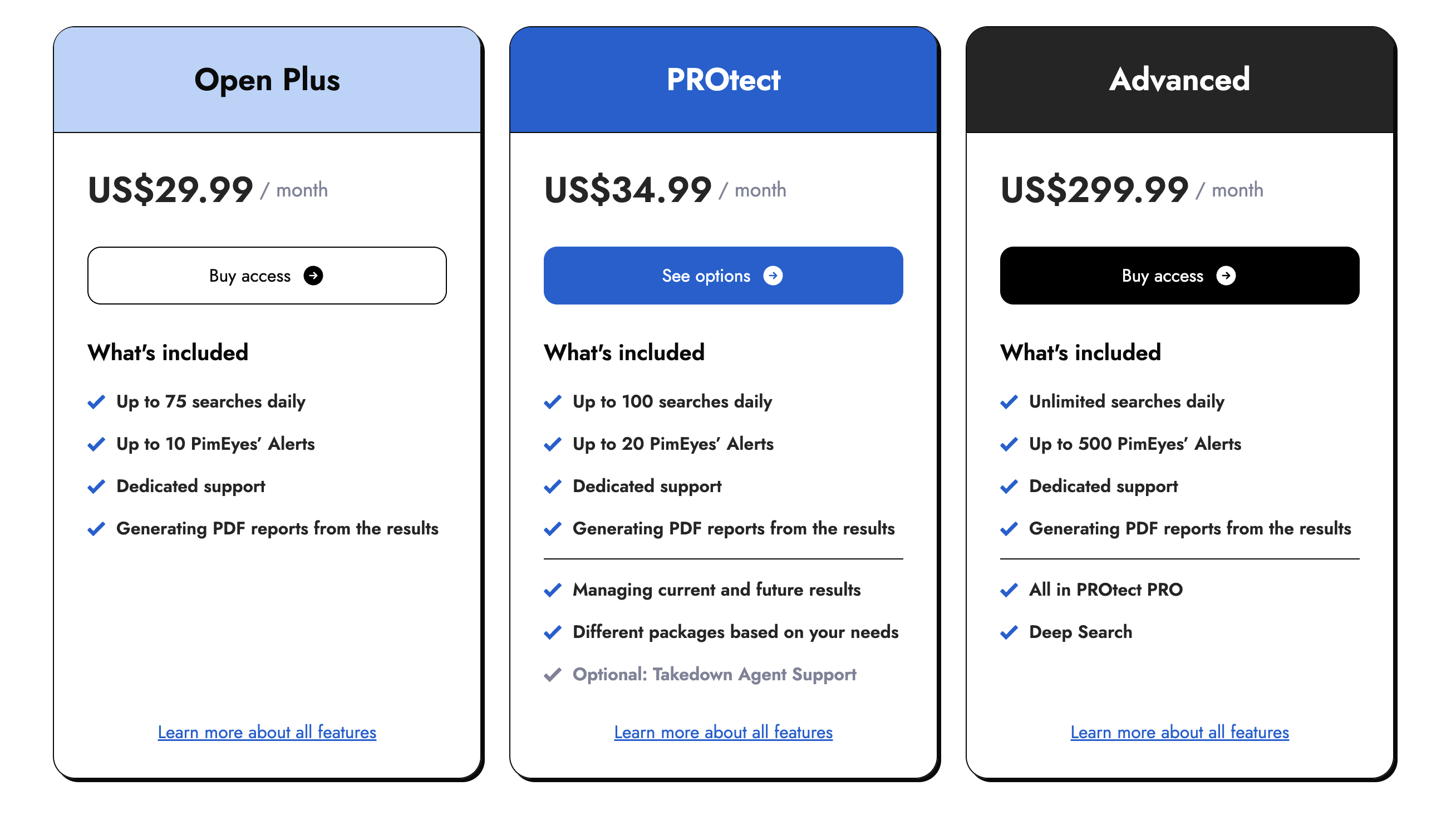ℹ️ Более подробную информацию о тарифах и возможностях сервиса вы можете найти на официальном сайте pimeyes.com