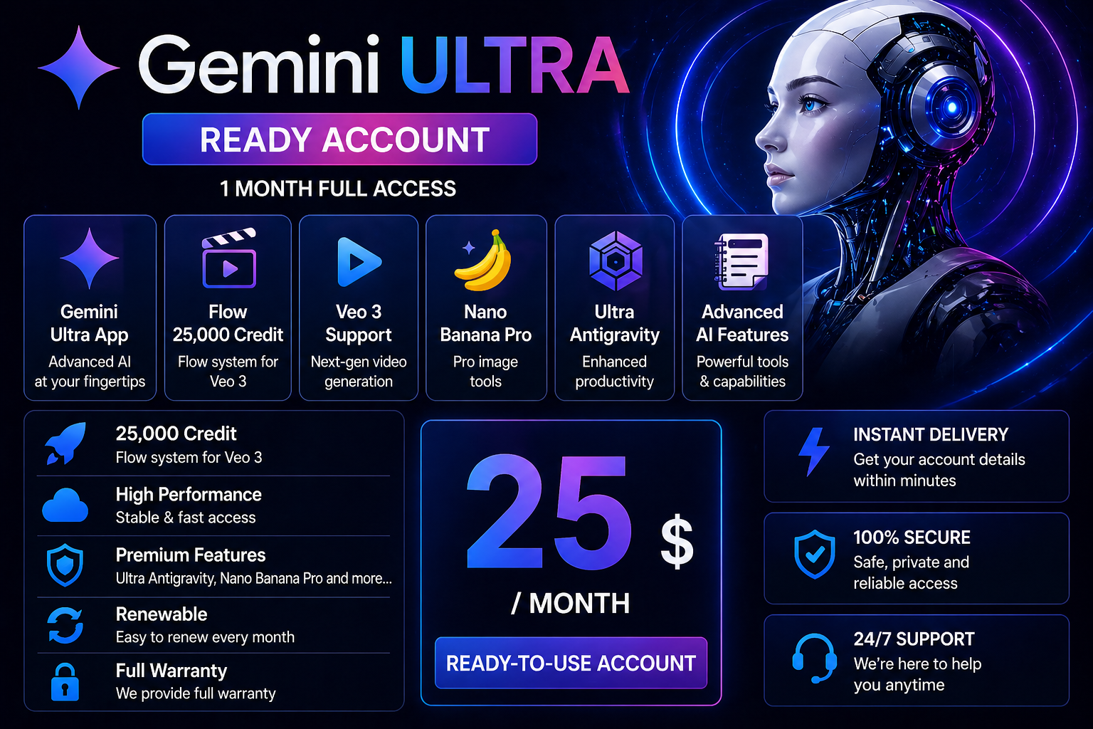 GEMINI ULTRA – ПОЛНЫЙ ДОСТУП К ИИДоступ к расширенным функциям Google AI Ultra.